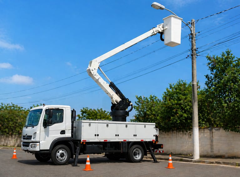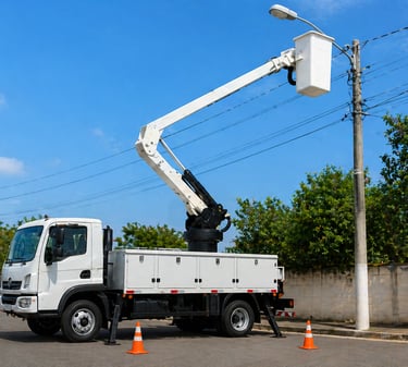 Locação de caminhões com cesto aéreo e equipamentos especializados, oferecendo suporte completo para execução de serviços com segurança e eficiência.